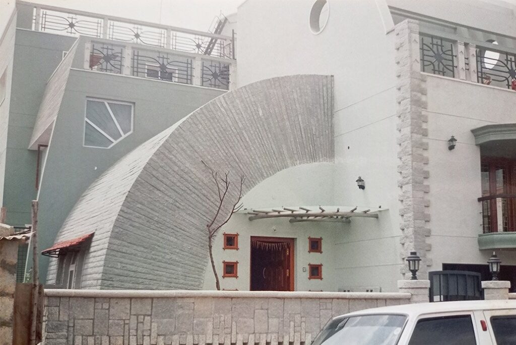 A unique stone arch construction which was a innovative work within the budget of the client, now the house is famous in Dollars Colony for it's stone arch.